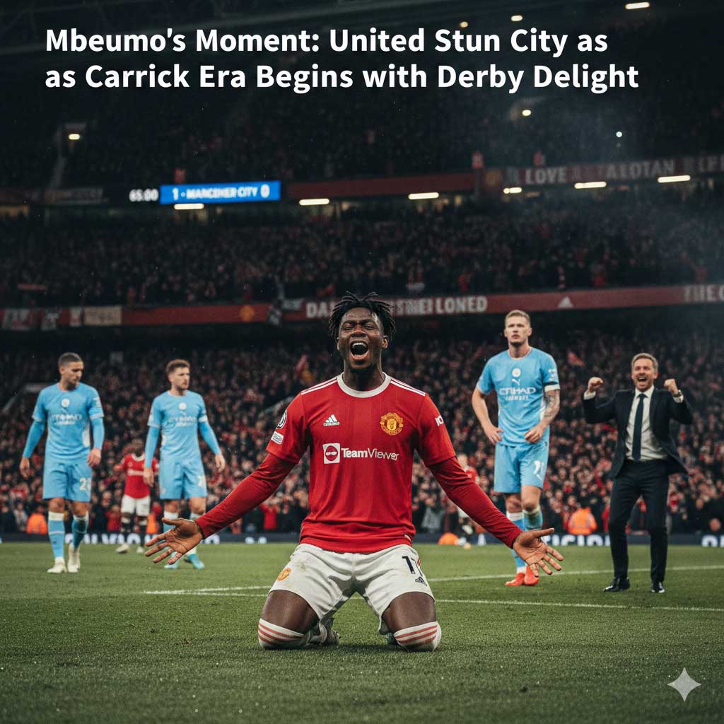 In a match defined by tactical intrigue and a “new manager bounce” that felt more like a seismic shift, Manchester United defeated Manchester City 1-0. The hero of the hour was Bryan Mbeumo, returning from international duty to score a 65th-minute winner that may well have reset the trajectory of United’s season.