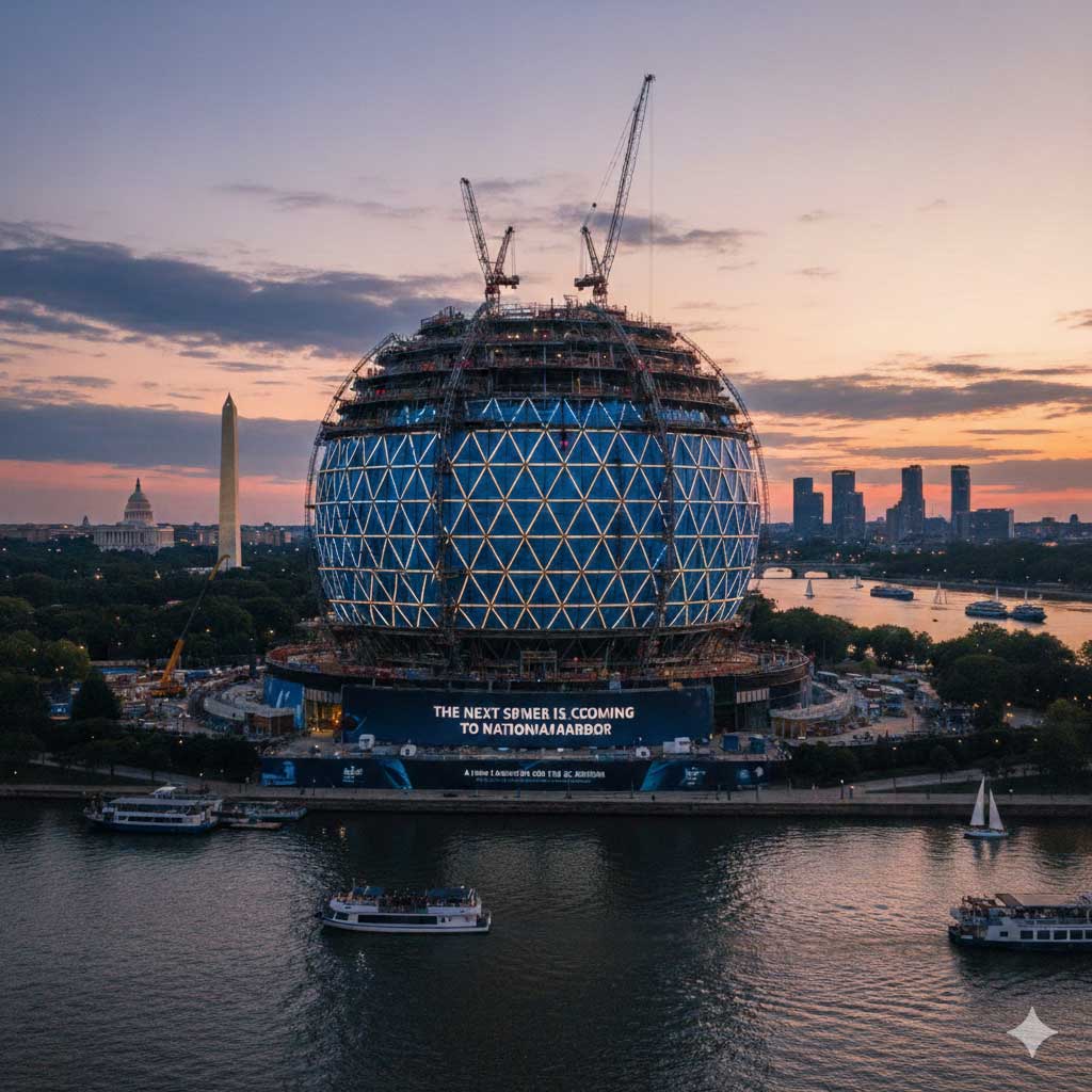 The National Harbor location is intended to be the blueprint for a global rollout of smaller venues. While a full-sized Sphere is currently under development in Abu Dhabi, this Maryland project proves that the Sphere concept is modular.