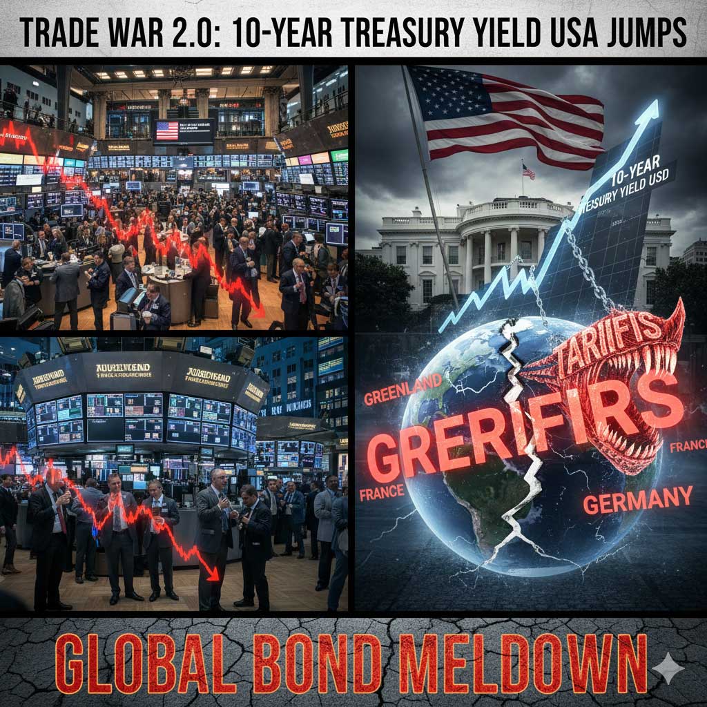 The relative calm of the New Year’s market rally was shattered on Tuesday as U.S. Treasury yields surged, driven by a combustible mix of revived trade war fears, geopolitical ultimatums, and a dramatic sell-off in Japanese debt. As American traders returned from the Martin Luther King Jr. Day holiday, they were met with a “Sell America” sentiment that pushed the 10-year Treasury yield USA to its highest level in four months.
